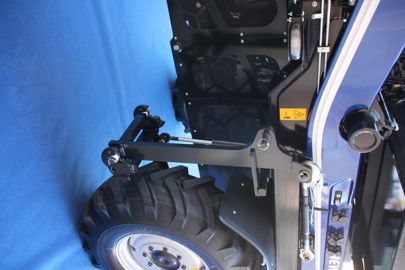 Le relevage central est placé sous la cabine, juste devant le moteur. Le centre de gravité du tracteur se situe au centre des quatre roues. (@ D.L.)