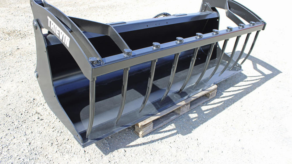 En plus des remorques, bennes monocoques et épandeurs à fumier, Thievin propose une gamme d’accessoires pour la manutention. Pour la rentrée, le constructeur lance une série de bennes multiservices dédiées aux chargeurs frontaux. Celles-ci s’appuient sur une structure en tôles de 8 mm d’épaisseur soudées à l’aide de robots en usine. Les largeurs des outils débutent à 2 100 mm et bénéficient d’une lame d’usure soudée de 150 mm de profondeur et 16 mm d’épaisseur. Les vérins utiles à l’ouverture du grappin, dont les dents forgées mesurent 35 mm de diamètre, sont montés en position arrière et disposent d’un diamètre de fût de 70 mm. En option, Thievin propose une casquette ainsi qu'une double lame d’usure boulonnée et réversible de 20 mm d’épaisseur.