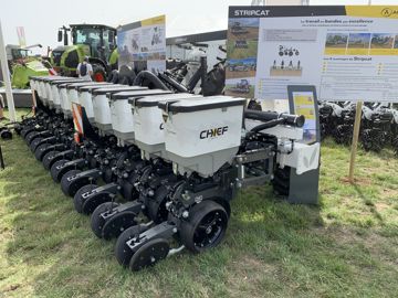 Après huit ans de recherche et d’études auprès d’agriculteurs, Agrisem présentait au salon Innov-Agri un nouveau semoir monograine rapide. Nommé « Chief », celui-ci repose sur un châssis formé d’une poutre de section carrée sur laquelle sont fixés des éléments semeurs de l’Américain Precision Planting. Le Chief se veut rapide, capable d’implanter un large panel de semences à vitesse standard ou à haute vitesse. Des capteurs de pression et de position permettent de semer dans toutes les conditions et dans des parcelles au relief hétérogène. Ce système intelligent, baptisé « Delta Force », mesure la pression 200 fois par seconde dans chaque élément. Via des vérins hydrauliques, il soulage ou exerce un effort sur chacun d'eux afin de garantir une profondeur de semis constante.