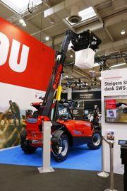 Le spécialiste français de la manutention Manitou officialise à l’occasion du salon Agritechnica le lancement de son premier chariot télescopique électrique, le MLT 625e. Celui-ci soulève une charge maximale de 2,5 t et atteint la hauteur de 5,85 m. Les batteries lithium-ion prennent place au centre du châssis, afin de maximiser la stabilité du véhicule. Avec une capacité de 35 kWh, elles offrent une autonomie de 5 h, selon le constructeur. Leur recharge s’opère via un chargeur intégré de 9kW, alimenté sous 240 V pour un temps de charge de 7h, ramené à 2h20 sous courant triphasé de 400 V. L’énergie récupérée lors des décélérations recharge également les batteries. Le MLT 625e propose deux modes de conduite : « Standard » et « Boost », pour les phases de travail plus exigeantes. Il embarque une quantité d’huile hydraulique réduite de 30 % par rapport à son homologue thermique, ceci grâce à l’absence de laminage de l’huile lorsqu’aucun mouvement n’est sollicité. Enfin, il profite d’un éclairage à Led, moins énergivore.