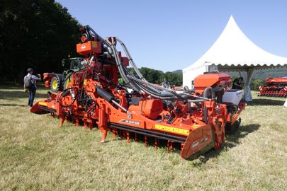 La BTFR 6030 dispose pour sa part de l’élément semeur à double disque SeedFlex 1000 monté sur parallélogramme et offrant un interrang de 12,5 ou 15 cm. Kuhn propose également de coupler la herse rotative au semoir monograine Kosma CSM. Celui-ci se compose de huit rangs espacés de 75 cm.