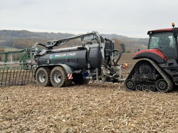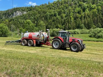 Le Franc-Comtois Miro propose une gamme de tonnes à lisier dominée par un unique modèle à trois essieux emportant 25 000 L. Le constructeur répond aux besoins spécifiques des exploitations installées en altitude en proposant, par exemple, une cloison centrale dans la cuve permettant de conserver le poids du liquide à l’avant et de le reporter sur l’attelage du tracteur. Il est également possible d’opter pour un timon en « V », suspendu hydrauliquement, dans lequel vient se loger le compresseur d’origine Jurop. Ainsi, ce dernier se retrouve sous l’avant de la cuve, conférant plus de compacité à l'ensemble. Les tonnes Miro peuvent se commander depuis une interface Isobus et accèdent à la régulation DPAE grâce à une vanne motorisée par un vérin électrique.