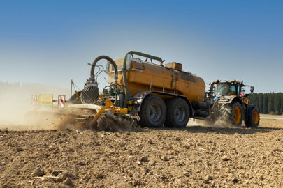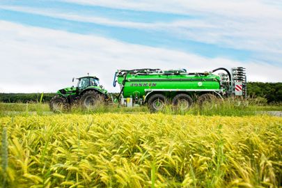 Les tonnes à lisier Zunhammer se reconnaissent facilement par leur cuve jaune en fibre de verre renforcée. Cette dernière repose sur un châssis galvanisé. La marque est distribuée en France depuis peu par Holmer, (groupe Exel Industries). Les modèles de la série K présentent une section ovalisée, visant à abaisser le centre de gravité. Leur cuve mesure 4,75 m de long. Les MKE conservent un châssis court mais adoptent une cuve au profil plus carré, de 5 m de long. Les SKE se déclinent en deux longueurs de cuve : 6 m sur essieu tandem et 7,70 m sur essieu tridem. Enfin, les LSKE, avec leur cuve de 9 m, proposent les plus grandes capacités d’emport. Toutes les tonnes reçoivent des pompes à lobes. Les canalisations passent dans le châssis afin de limiter les volumes résiduels et d’éviter les contre-pressions. À l’arrière, le constructeur d’outre-Rhin propose plusieurs accessoires d’épandage de sa fabrication. La rampe à patins GlideFix se déploie sur des largeurs allant de 12 à 24 m, et compte entre 48 et 96 descentes, espacées de 25 cm. Des patins à double sortie réduisent l’interrang à 12,5 cm, limitant ainsi le risque de contamination des fourrages. Les rampes à pendillards se déclinent dans des largeurs de 9 à 36 m, et profitent du système de relevage Drop-Stop interdisant les chutes de gouttes lorsque l’outil est relevé. L’enfouisseur à disques Kusgu, disponible en largeurs de 4, 5 et 6,50 m, réalise en plus un travail de déchaumage. Sa variante traînée Kusgu-Trail opère pour sa part sur 5,85, 6,35 ou 7 m. Un injecteur à dents, dénommé « Vibro », compte de 9 à 25 dents, sur des largeurs de 2,45 à 6 m, et réalise également un déchaumage superficiel.