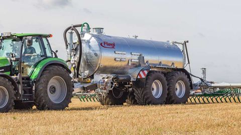 Chez Fliegl, les PFW intègrent une pompe à vis excentrique, de 4 000, 6 000 ou 7 500 L/min, assurant les fonctions de remplissage, de mélange et d’épandage. Celle-ci laisse place en option à une pompe à lobes Vogelsang. Les citernes HFW ne reçoivent pas d’équipement de pompage et se remplissent uniquement par gravité ou à l’aide d’une pompe externe. Elles assurent l’épandage à l’aide d’une pompe centrifuge débitant 3 500 ou 6 500 L/min. Les citernes Poly Line en plastique renforcé de fibre de verre, reposant sur un châssis galvanisé, offrent un centre de gravité abaissé pour une plus grande stabilité. Les Big Foot se chaussent de grands pneumatiques afin de préserver les sols. Enfin, la Twist Line peut évoluer en crabe grâce à son essieu directeur.