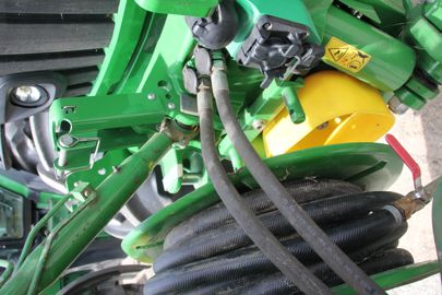 La pompe étant conçue à l’origine pour un entraînement par prise de force à 540 tr/min, un manchon adaptateur est trouvé chez Hydrokit pour assurer la liaison avec le moteur hydraulique. En sortie de pompe, l’entrepreneur branche un tuyau de 19 mm de diamètre d’une dizaine de mètres de longueur avec une vanne quart de tour. Le moteur est connecté à un distributeur hydraulique placé à l’avant du tracteur.