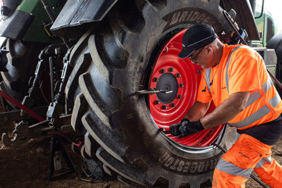 L’agriculteur exploite un peu plus de 200 ha, dont 150 environ en céréales. Installé sur la commune de Saint-Pourçain-sur-Sioule, dans l’Allier, il s’est adressé à l’agence voisine Côté Route by First Stop afin d’optimiser le choix de ses pneumatiques. Cette base emploie trois techniciens spécialisés dans le montage et la réparation des pneumatiques sur les machines agricoles et les véhicules industriels. La clientèle agricole représente environ 30 % de son chiffre d’affaires, en plus des véhicules lourds (50 %) et des voitures (20 %). Le réseau First Stop (propriété de Bridgestone) compte en France 15 technico-commerciaux déployés sur le terrain afin de conseiller les agriculteurs dans le choix de leurs pneumatiques.