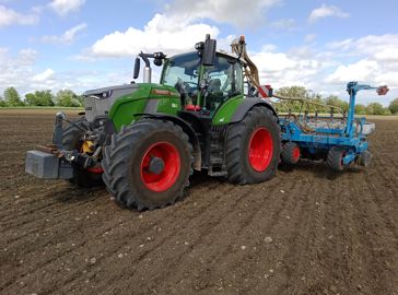 L’agriculteur possède désormais un Fendt 724 Vario. Ce tracteur est chaussé de pneumatiques Bridgestone VF 600/65 R28 à l’avant et VF 710/70 R38 à l’arrière. Il n’est cependant pas équipé de système de télégonflage.