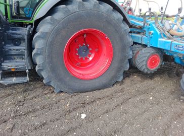 « Il faut faire un compromis sur la pression, constate François Blanchet. Je descends jusqu’à 0,8 bar, mais la flexion des pneumatiques devient presque dangereuse sur route. J’ai acheté plus récemment un second tracteur, un Fendt 728 Vario, doté du télégonflage VarioGrip. Pour les mêmes travaux, je peux aller jusqu’à 0,6 bar à l’arrière et à 0,7 bar à l’avant. Ceci permet de limiter le tassement. Ce tracteur était équipé de pneumatiques Michelin XeoBib de 710 mm que j’ai fait remplacer par des modèles en 800 mm. Cette largeur s’avère plus polyvalente, tout en limitant le tassement. »