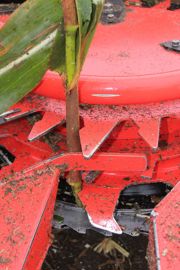 Dès la prochaine saison, ces nouveaux becs baptisés « Pro » remplaceront les anciennes versions « Plus » commercialisées depuis 2013. Le constructeur propose toujours deux séries : les becs 300Pro équipés de toupies de petit diamètre, et les 400Pro reconnaissables à leurs grandes toupies. Mais le changement ne porte pas que sur le nom. La nouvelle génération se distingue notamment de la précédente par sa conception à trois étages de dents, contre quatre jusqu’à présent. Pour maintenir la même efficacité, le constructeur a revu le design des pièces travaillantes, désormais pourvues d’ergots sur la tranche arrière. L’objectif ? Bloquer les tiges de maïs qui viennent se loger dans ces encoches sous l’effet de la vitesse de rotation de la scie (1 000 tr/min).