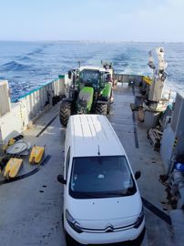Sur les chantiers, le chauffeur est accompagné d’un opérateur chargé de contrôler la profondeur qui doit impérativement rester homogène. Une caméra en cabine lui permet de surveiller le poseur et de communiquer avec l’opérateur, qui l’informe en continu sur la profondeur de travail effective. En raison de la profondeur de ce type d'intervention, l’usure des dents s’avère importante et nécessite un temps d’entretien long, soit trois jours de soudure après une semaine de chantier. Au fil des années, les travaux d’enfouissement de câbles de fibre optique se sont étendus à la Normandie et aux Pays de la Loire. C’est non sans fierté que l’entrepreneur fait référence au chantier réalisé à Belle-Île pendant trois semaines, impliquant le transport de la trancheuse par bateau. Ce nouvel investissement a créé des opportunités que l’entreprise a su saisir, sollicitée par exemple pour installer des réseaux d’eau potable et des câbles électriques. De même, l’agrandissement des fermes conduit les exploitants agricoles à opter pour des systèmes souterrains d’alimentation en eau des troupeaux. Alexandre Henry estime le volume de travail annuel à 30 km pour la pose de câbles de fibre optique, 15 km pour l’installation des réseaux d’eau potable et 15 km pour l’enfouissement des câbles électriques.