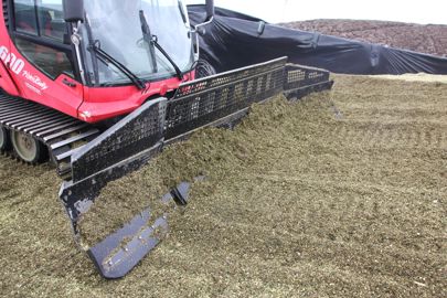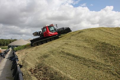 « Chaque dameuse possède une lame de 4,5 m à l’avant, précise Julien Desimpel. Il faut donc de la place pour que les deux machines ne se gênent pas – ce qui est souvent le cas dans les gros élevages ou chez les méthaniseurs. Quand le silo est plus petit, je ne prévois qu’une seule dameuse avec un tracteur supplémentaire pour tasser en parallèle. »