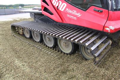 En sortie d’hiver, la plus ancienne des deux dameuses est également employée pour réaliser les apports d’engrais précoces sans abîmer le sol. L’ETA installe alors pour l’occasion un autre train de chenilles, mesurant chacune 1,2 m de largeur. Sur celles-ci, la bande de roulement est lisse pour éviter d’arracher les plantes dans les virages ou les demi-tours. Ces dameuses sont initialement conçues pour travailler durant l’hiver, en haute altitude, avec un thermomètre qui passe rarement au-dessus de zéro.
