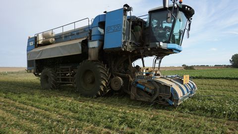 Le prototype de cette cueilleuse, nommée « SP220 », a vu le jour en 2022, et les premiers tests de récolte de petits pois et de flageolets ont eu lieu l’année suivante. En 2025, 200 ha de petits pois et la même superficie en flageolets ont été récoltés avec cette machine.