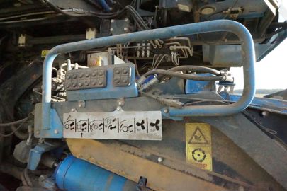 Les pois passent au travers d’une chaîne à mailles et tombent dans la trémie d’une capacité de 2,5 t. Les gousses non ouvertes retournent dans la chambre de battage. La vidange s’effectue ainsi dans des remorques agricoles de grande capacité ou dans des camions de 25 ou 30 t, afin de s’assurer d'être dans les délais d’approvisionnement des usines. Pour contribuer à la grande précision de la récolte, un système de correction de dévers permet aux roues avant de s’adapter indépendamment au parcellaire. Ce sont les roues qui bougent, et non l’essieu, faisant ainsi gagner de l’amplitude par rapport à une machine classique. De plus, deux vérins positionnés à l’arrière servent à maintenir la récolteuse à l'horizontal.