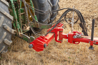 J’attaque l'essai du déchaumeur par un premier passage derrière un blé, dans un sol argilo-limoneux. Je remonte manuellement les roues de jauge frontales et positionne hydrauliquement le terrage du rouleau à mi-chemin entre les crans 3 et 4 présents sur la réglette. J’obtiens alors une profondeur de travail de 10 cm grâce aux disques de 560 mm de diamètre et de 5 cm d’épaisseur. Sur le plat, je maintiens une vitesse de travail de près de 15 km/h afin d’obtenir un bon brassage et un mulch satisfaisant de la surface. J’ajuste ensuite manuellement le peigne, via une goupille à positionner dans une platine percée. Ce dernier, doté de tiges de 10 mm de diamètre, prend place entre la deuxième rangée de disques et le rouleau. Il me permet d’obtenir une répartition homogène des pailles sur l’intégralité de la largeur de travail et accroît le nivellement. Le rouleau « L » de 600 mm de diamètre rappuie ensuite le travail. L’essieu, replié au-dessus de l’outil, accentue par ailleurs l’effet du rouleau. Dans cette position, il assure également un rôle de maintien du déchaumeur, qui n’oscille pas derrière le tracteur. Dans les fourrières, je tourne sur le rouleau en utilisant un distributeur. Le tracteur n’étant doté ni de butées hydrauliques ni de temporisations, je dois repositionner mon réglage à chaque début de ligne, et ce, malgré les roues de jauge à l’avant de l’appareil. À ce moment-là, je me dis qu’une réglette placée sur la droite du déchaumeur serait plus aisée à visualiser depuis la cabine.