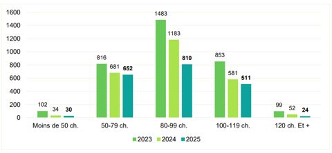 Evolution des premières immatriculations par tranche de puissance (2023-2025)