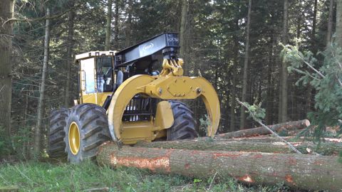 Weiler s’inscrit dans la continuité des productions Caterpillar mais ajoute des modifications significatives afin d’accroître la robustesse de ses skidders face aux conditions extrêmes rencontrées en forêt. Ainsi, le système de refroidissement a été renforcé. Placés entre la cabine et le moteur, les radiateurs adoptent une position longitudinale. Le flux d’air entre par le flanc droit du capot et est refoulé par le ventilateur, placé à gauche. La double arche supportant l’imposant grappin voit également ses fixations sur le châssis redimensionnées pour absorber des efforts plus importants. Elle s’articule grâce à quatre vérins. Le grappin affiche une ouverture totale de 3,46 m et jusqu’à 1,46 m2 d’espace entre ses pinces refermées. Le S250 dispose en plus d’un treuil de 25 t de capacité enroulant du câble de 16 à 22 mm de diamètre. Techni Forêt profite de cette tournée de démonstration pour connaître les besoins des exploitants et travaille à l’implantation d’autres équipements tels qu'un double treuil, ou une grue, avec les principaux fournisseurs présents sur le marché. La lame frontale occupe toute la largeur de l’engin. Elle se soulève suffisamment pour offrir 1,80 m de dégagement en dessous d’elle.
