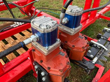 L’écimeuse travaille sur 13,2 m de large, et ses lames sont entraînées par deux moteurs hydrauliques. La machine se replie en deux parties et s'ajuste en hauteur et en dévers.