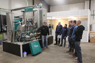 Afin d'accueillir du public dans des conditions adaptées à l’apprentissage, la direction a choisi de convertir un bâtiment de stockage de 230 m2 dont disposait la base de Villedieu-les-Poêles, située à proximité du siège social de Fleury, dans la Manche. Une salle destinée à la formation théorique a été aménagée. Dotée d’un écran, d’un vidéoprojecteur et de tables de travail, elle peut accueillir une dizaine de personnes. Dans ce même bâtiment, Élevance a installé une stalle de robots GEA, sur laquelle les stagiaires peuvent travailler en conditions presque réelles. « Nous n’avons pas d’animaux sur le site, mais disposer d’un robot de traite fonctionnel est vraiment intéressant pour les techniciens, précise Guillaume Catherine. Grâce à ce matériel, le formateur organise des sessions complètes : installation et branchements, changement de pièces, entretien, simulation de diverses pannes… Jusqu’à présent, ce type de stage était beaucoup plus théorique. Il nous arrivait d’aller travailler chez un éleveur autour du robot de l’exploitation, mais le temps consacré aux manipulations était souvent restreint. Il ne nous était pas possible de réaliser autant d’interventions lorsque des vaches attendaient pour passer à la traite. Désormais, l’apprentissage est nettement plus complet et plus intéressant. »