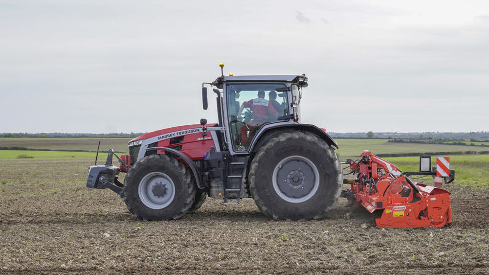 Sa puissance, son couple, sa consommation Le bloc à six cylindres Agco Power de 7,4 L du 8S.305 Dyna-VT a délivré une puissance maximale de 281,2 ch OCDE au régime de 1 886 tr.min-1 , correspondant à 1 002 tr.min-1 à la prise de force. À ce régime, le tracteur absorbait 234 g.kW-1 .h-1 de GNR. Il délivre son couple maximal de 1 234,3 N.m à 1 415 tr.min-1 .Commentaire Massey Ferguson commercialise son 8S.305 Dyna-VT pour une puissance maximale de 305 ch ECE R120. La différence entre la valeur mesurée et celle qu'annonce le tractoriste révèle un écart de 7,8 % . Celui-ci s’explique par la différence entre les normes de mesure utilisées (voir encadré « Mémo »). Le 8S.305 affiche une plage de puissance pouvant être considérée comme constante entre 1 600 et 1 920 tr.min-1 . Dans cet intervalle, il développe plus de 270,5 ch OCDE. Sa plage de couple constant se situe entre 1 221 et 1 600 tr.min-1 , soit une plage de près de 400 tr.min-1 . Sa réserve de couple s’élève à 36,9 % . La consommation spécifique la plus faible, présentée avec la surpuissance, soit 224 g.kW-1 .h-1 , est atteinte à 1 507 tr.min-1 . Le moteur affiche alors un rendement optimal de 35.9 %. La plage d’utilisation du Massey Ferguson 8S.305 Dyna-VT se situe entre 1 221 et 1 882 tr.min-1 . Cette limite haute correspond au régime normalisé de la prise de force à 1 000 tr.min-1 .Mémo
