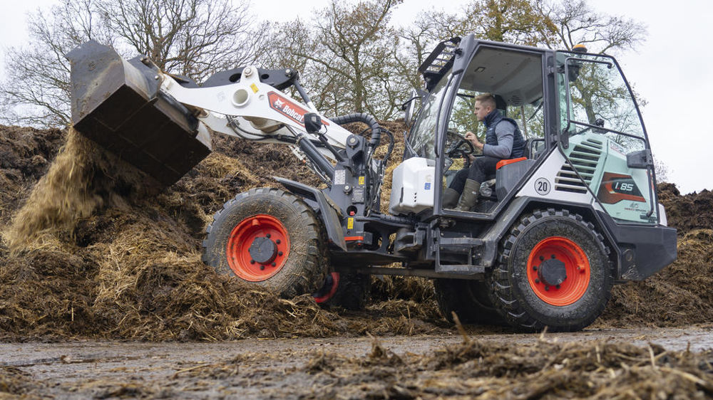 Lorsque je commence à manœuvrer avec la chargeuse, je suis rapidement surpris par sa maniabilité. J’en profite pour régler le volant, le siège et l’accoudoir qui, oui, est également réglable ! La colonne de direction s'ajuste en profondeur et en inclinaison. Une fois installé à ma guise, je poursuis la prise en main de ce félin de 68 ch et de 2,3 t de capacité de levage. Comme toute chargeuse articulée en son centre, là où l’avant passe, l’arrière suit. Au début, je me retournais pour jeter des coups d’œil ou regardais souvent dans les rétroviseurs – aisément réglés en ouvrant la porte – afin d’assurer mes déplacements. Après plusieurs manœuvres, j’ai mes marques. Au final, cet engin se prend vite en main. Bobcat annonce un braquage de 40°, et cela se ressent dans les mouvements. À mon sens, la machine braque très court. Lors de mon premier chantier de la journée, qui consiste à remonter un tas de fumier à l’extérieur, je ne dispose que de quelques mètres entre ce tas et le mur de la stabulation. Pour autant, je n’ai pas manqué de place. La machine se faufile très bien dans la zone exiguë à ma disposition. De surcroît, la caméra de recul permet de manœuvrer sans souci et ainsi d’exploiter pleinement l’espace disponible. Un gabarit restreint, un rayon de braquage court et la présence d’une caméra de recul sont les trois éléments favorisant la maniabilité de la Bobcat.