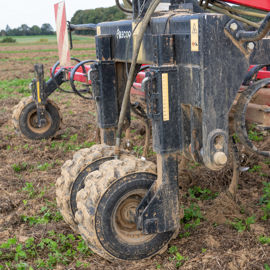 « Un scalpeur ne doit pas avoir de rouleau, car celui-ci tasse la terre avec les adventices, favorisant leurs repousses, estime l’agriculteur. Les roues stabilisatrices ont également cet effet. Il faut donc les replacer en amont pour éviter ce phénomène. »