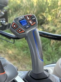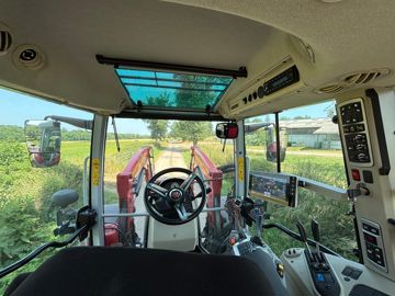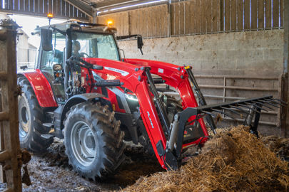 Le Massey Ferguson 5S.135 est un tracteur dont l’essence même repose sur le besoin en polyvalence des fermes de polyculture-élevage. Son moteur maison de 4,4 L de cylindrée, d’abord, lui confère 135 ch de puissance maximale dans un gabarit serré. Le constructeur intègre, en effet, l’ensemble du système de dépollution, sans vanne EGR, au niveau du pot d’échappement, dans l’angle du montant de cabine. Ceci lui permet de dessiner un capot plongeant pour offrir une vue imprenable sur le chargeur frontal. Son relevage arrière, ensuite, délivre une force de 6 t pour les travaux au champ ou de fenaison. La transmission maison semi-powershift entièrement robotisée Dyna-6, bien connue, est pilotée depuis une cabine à six montants confortable et moderne, suspendue mécaniquement de série. À l’intérieur, le chauffeur découvre un toit vitré. Il retrouve un terminal de commande Datatronic 5 ergonomique, mais surtout un accoudoir où trônent deux leviers multifonctions très bien pensés ainsi qu’une multitude d’accessoires issus de l’atelier de personnalisation MF by You. Côté hydraulique, trois options sont disponibles : 58 et 110 L/min avec un circuit à centre ouvert ou 110 L à débit variable. Le point fort du tracteur réside dans son impressionnante capacité d’huile exportable de 42 L.