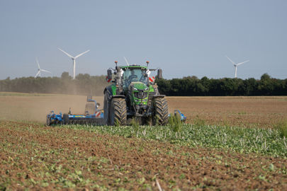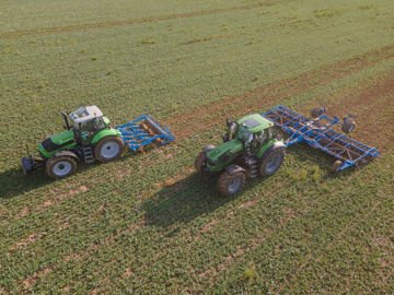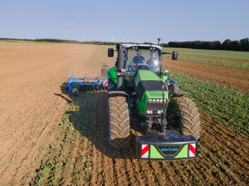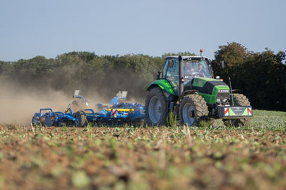 L’idée de ce comparatif est d’apprécier les évolutions entre deux générations de tracteurs que 14 années séparent, équipés tous deux de la variation continue TTV lancée en 2001 chez Deutz-Fahr. Pour mieux se rendre compte des changements apportés à leur design depuis la présentation du tout premier tracteur en 1995, nos deux Agrotron TTV ont pris la pose aux côtés d'un modèle de 2001, à savoir un Agrotron 135 MK3. Mais notre comparatif concerne bien les deux gros tracteurs mis à notre disposition. L’équipe française de Deutz-Fahr nous a donné rendez-vous à la fin du mois d’août chez l'un de ses concessionnaires, les établissements Nouvellon, au sud de Chartres (Eure-et-Loir), dirigés par Rémi Nouvellon et son épouse, Pauline. Ce dernier nous a également prêté trois de ses matériels : un déchaumeur à disques indépendants Farmet de 8 m d’envergure, un outil à dents de type fissurateur Actisol à 11 dents et une benne Maupu de 21 t. Comme vous avez pu le découvrir en avril, votre magazine Matériel Agricole souffle cette année ses 30 bougies, à l’image de l’Agrotron. Ce clin d’œil est l’occasion de regarder en arrière et de comparer les technologies de ces dernières années avec celles d’aujourd’hui… et de demain. D’ailleurs, la rumeur enfle, notamment dans les réseaux sociaux, sur l'arrivée d'une nouvelle génération de tracteurs que la marque à la couleur vert pomme pourrait bien présenter dans quelques semaines sur le salon de Hanovre… L’Agrotron du futur y sera-t-il dévoilé ? Avec le même nom ? Réponse dans un prochain numéro, sur notre site Internet Materielagricole.info et dans nos réseaux.