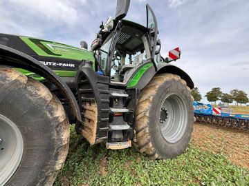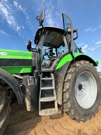 L'année 1995 fut riche en innovations, à l’image du stand de Deutz-Fahr sur le salon Agritechnica cette année-là. La marque bavaroise lançait alors une toute nouvelle génération de tracteurs, au nom futuriste et visionnaire : l’Agrotron. Ces engins se démarquaient de la concurrence par leur visibilité grâce, notamment, à un capot très plongeant, inspiré des séries AgroXtra et AgroStar logeant un six-cylindres sous un faible espace. La cabine à six montants n’était pas en reste, avec une visibilité générale accrue, un agencement épuré et des commandes ergonomiques bénéficiant d'un code couleur encore en vigueur à ce jour : orange pour le moteur et la transmission, bleu pour l’hydraulique, vert pour le relevage et jaune pour les boutons de prise de force. Ce tracteur Agrotron, à l’instar d’une autre marque bavaroise, proposait, entre autres, un inverseur à gauche du volant à présélection ou sous charge, et, à son lancement, une transmission semi-powershift dotée de la fonction Speedmatching. Assez regardé dans le rétroviseur ! Il est temps de nous rendre dans la parcelle où nous attendent non pas deux, mais trois générations d’Agrotron.