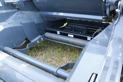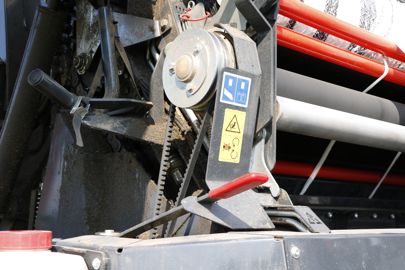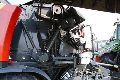 La chambre de pressage de la VBP 7190 renferme trois rouleaux dits « starters ». L’un d’eux, positionné en bas, supporte le poids de la balle, tandis que les deux autres, placés à l’avant, aident au démarrage de la formation de la balle. Les quatre courroies sans fin adoptent une position telle qu’elles forment un volume initial dans la chambre, comparable à une préchambre, ce qui facilite, selon le constructeur, le pressage de n’importe quel fourrage dans toutes les conditions de température et d’hygrométrie possibles. Elles profitent d’un double entraînement afin d’éliminer le risque de patinage en présence d’un fort taux d’humidité. Les capteurs d’humidité iDense, disposés de part et d’autre de la chambre de pressage, mesurent la conductivité du fourrage pour en déterminer son taux de matière sèche. En fonction des consignes données par le chauffeur, la presse ajuste automatiquement la densité de la balle suivante. Trois modes (paille, foin et enrubannage), paramétrés d’usine, s’accompagnent de trois modes manuels.