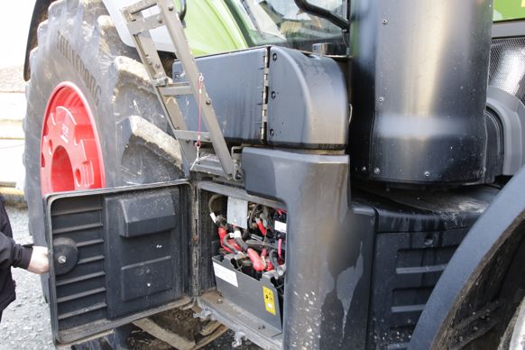 - Le remplissage du réservoir hydraulique haut perché, à droite de la cabine.