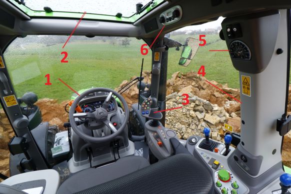 3 Le joystick regroupe la gestion de la transmission, du relevage et de deux distributeurs.