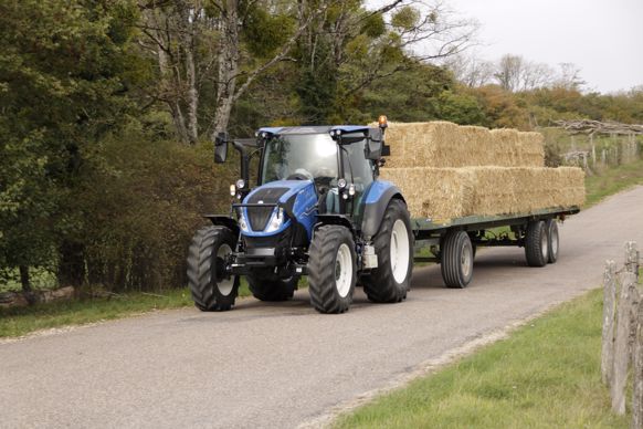 Pour monter et descendre les powershifts, j’appuie sur « + » ou « - » à l’aide du pouce. Le passage des gammes nécessite, quant à lui, d’appuyer simultanément sur le bouton « Shift » à l’aide de l’index derrière le joystick. Ce dernier est fixe, et c’est bien dommage. J’aurais apprécié, par exemple, de pouvoir gérer la boîte avec des impulsions, au moins pour les powershifts. Pour pallier ce manque, New Holland équipe sa transmission d’automatismes. Je descends atteler le plateau, le charge de balles de paille et je vous explique ça après mon premier tour chronométré sur un parcours bien vallonné. Sur la bascule, le chargement de paille affiche 10 t, de quoi se rendre compte de la souplesse du passage des vitesses. Après un premier tour de 11,8 km réalisé en 21 min 34 s, je prends mes marques. Le T5 offre deux stratégies de conduite automatique : « champ » et « route ». Pour activer ce dernier, un double-clic sur le bouton « Auto » au joystick s’impose. Un pictogramme représentant une remorque m’indique que le mode transport est actif. Je bascule l’inverseur en avant de sorte que le tracteur gère lui-même les gammes et les powershifts, tout en adaptant le bon rapport selon la charge et l’allure souhaitée, contrôlée à l’aide du pied. Le régime du passage d’une vitesse à l’autre varie selon l'inclinaison de la pente, mais jamais en dessous des 1 700 tr/min lorsque l’agressivité est à son maximum.