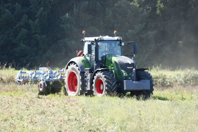 Revenons-en à notre essai. En plus du Valtra, nous avions à disposition un Fendt 826 Vario prêté par le concessionnaire local PCE. Ceci nous a donné l’idée de comparer la consommation de carburant entre les deux protagonistes (voir tableau). Après avoir couvert environ la moitié de la surface de la parcelle avec l’outil Actisol, nous attelons un déchaumeur à disques traîné Techmagri de 6 m. Là, les tracteurs semblent moins peiner. Nous fixons la vitesse de travail à 12,5 km/h. La transmission à variation continue du Valtra exploite bien les capacités de son moteur de 7,4 L. Pour assurer une bonne adhérence, nous avons réglé la pression des pneumatiques à 0,8 bar à l’avant et à 0,7 bar à l’arrière. Le Valtra reçoit quatre pneus Michelin AxioBib de dimensions 600/70 R30 devant et 650/85 R38 derrière. Cette dernière monte n’est pas commune mais autorise un affaissement important des flancs afin d’élargir l’empreinte au sol. Ce tracteur est d’ailleurs conçu pour chausser des pneumatiques de 2,05 m de diamètre à l’arrière.