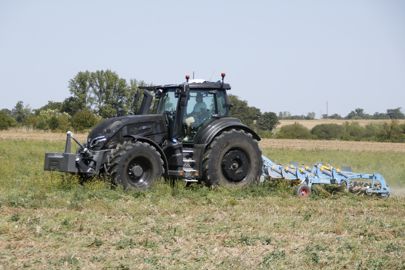 Alors que la série T5 (qui culmine à 271 ch) et la S4 (qui démarre à 275 ch) se suivaient parfaitement, Valtra crée la surprise en juin 2022 en levant le voile sur la gamme Q5, positionnée à cheval entre celles-là. Les cinq nouveaux tracteurs qui la composent, du Q225 au Q305, s’échelonnent par paliers de 20 ch, de 230 à 305 ch. Le modèle le plus puissant a fait l’objet de notre essai à Verneiges, dans la Creuse, à la fin du mois d'août. Au programme : travail du sol avec des outils à disques et à dents, et transport de fumier. Nous commençons par atteler un fissurateur à dents porté Actisol de 5 m. La parcelle dans laquelle nous intervenons a été moissonnée au début de l’été, et les adventices, principalement des chardons, s’y sont implantées. Nous travaillons à 7 km/h. Le Valtra n’éprouve pas trop de difficulté à tirer cet outil. Son moteur se cale aux environs de 1 400 tr/min, soit au cœur de sa plage de couple constant, située entre 1 100 et 1 600 tr/min. Nous profitons de ce chantier pour prendre en main le système de guidage, qui se pilote depuis le second écran, disposé au-dessus de la console, à droite. Rien de compliqué de ce côté. Après avoir créé une nouvelle parcelle et une tâche, puis renseigné les dimensions de l’outil, nous pouvons commencer en plaçant simplement le point « A » au départ et le point « B », afin de définir une ligne de référence à laquelle tous les passages suivants seront parallèles.
