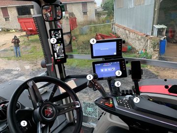 3 - Le terminal de 9’’ Datatronic 5, de série sur le 8S.305, permet de contrôler le guidage GPS, les distributeurs, les divers automatismes, le relevage, la prise de force, l’Isobus, les éventuelles caméras, la radio, les appareils connectés en Bluetooth, etc.