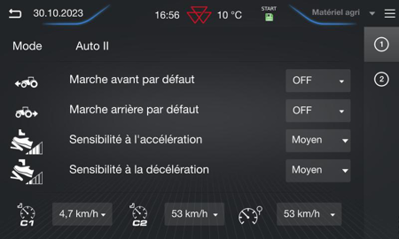 Sur notre tracteur d’essai 8S.305, le chauffeur peut passer de la conduite depuis le joystick au mode pédale à tout moment et sans autre action de sa part. Lors des travaux, la transmission optimise d’elle-même le régime moteur en fonction de la charge et de la vitesse. Sur route, la Dyna-VT maintient un régime moteur de 1 400 tr/min à 40 km/h et de 1 550 tr/min à 50 km/h. De plus, elle transmet le couple maximal du moteur entre 1 000 et 1 500 tr/min. La prise de force arrière propose les régimes 540E et 1 000 tr/min, ou 1 000 et 1 000E tr/min. En plus de la Dyna-VT, les autres modèles de la gamme 8S peuvent recevoir la transmission semi-powershift Dyna-7 ou la Dyna E-Power.