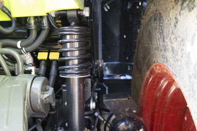 - La transmission Claas maison avec huile séparée. - Les trois plages de vitesse virtuelles paramétrables, plus une vitesse cible. - Les deux seuls régimes de prise de force de série.110 L/min en standard