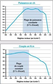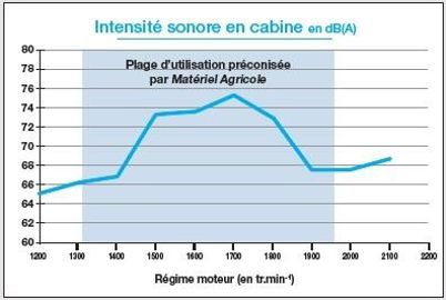 John Deere annonce pour son 6R 150 AutoPowr une puissance maximale de 165 ch ECE R120 auxquels s’ajoutent 12 ch de boost. Selon le protocole e mesure OCDE utilisé lors de ce passage au banc moteur, le tracteur a délivré une puissance maximale de 146 ch. L’écart entre les valeurs mesurées et celles qu’annonce le constructeur s’établit à environ 11,5 %. Il s’explique principalement par la différence entre les normes de mesure utilisées (voir notre encadré « L’incidence des normes »). Le quatre-cylindres John Deere PSS de 4,5 L de notre tracteur d’essai semble donc développer un peu moins que sa puissance. C’est autour de 1 800 tr.min-1 que le 6R 150 AutoPowr offre sa puissance maximale, l’idéal pour une utilisation à la prise de force. Sa plage de puissance constante s’étend de 1 600 à 2 000 tr.min-1. Dans cet intervalle, le John Deere développe toujours plus de 138,7 ch, selon les données du banc. La plage de couple constant, pour sa part, se situe entre 1 300 et 1 700 tr.min-1. Ainsi, ce tracteur offre une plage optimale d’utilisation comprise entre 1 600 et 1 700 tr.min-1.