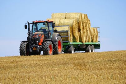 En guise de dessert pour cet essai complet, je passe au pressage. J’attelle la presse à balles rondes John Deere 592 de la ferme et me dirige vers une parcelle fanée et andainée. Là encore, le Kubota ne manque pas de puissance, donc je sélectionne à nouveau le régime de prise de force économique. J’affecte les deux roulettes du joystick aux distributeurs hydrauliques : la première pour le pick-up, la seconde pour la porte de la presse. La transmission à variation continue s’avère particulièrement utile lors de cet atelier. Il me suffit de moduler l’allure au pied en fonction de la quantité de foin à ramasser et du remplissage de la chambre. Aucun risque de bourrage ! Dans les passages les plus longs, je m’offre même le luxe d’activer le « cruise » à 7 km/h. Pieds croisés, siège pivoté vers la droite, c’est l’Amérique ! Je pourrais presser pendant des journées entières. Malheureusement, la taille de la parcelle me ramène vite à la réalité. Cette semaine d’essai s’achève déjà. Je n’ai pas vu le temps passer au volant du M7-174, signe qu’il est confortable, facile à utiliser, et qu’il sait se montrer efficace, quelle que soit la tâche à laquelle il s’affaire. Tout cela élégamment paré de son smoking noir. Ce Kubota a décidément tout pour plaire !