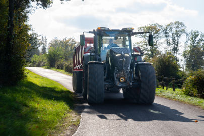 Après un petit après-midi de montage à trois personnes, le jumelage intégral est installé. Nous remercions d’ailleurs Antoine Philips, formateur et démonstrateur chez Fendt France, pour le coup de main. Une fois jumelé, le tracteur mesure 4,6 m de large ! Il faut dire que l’arrière embarque quatre pneus d’une largeur de 710 mm chacun ! J’ajuste la pression à 900 g dans les huit roues pour bénéficier au maximum de l’adhérence de la bête. Mon collègue m’escorte avec le 4x4 de la ferme, et nous prenons la route avec le Terrano. J’ai l’habitude de rouler avec des tracteurs jumelés de 4 m de large, mais là, 4,6 m, ça change tout !