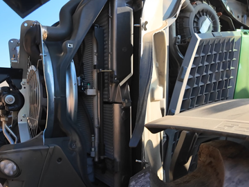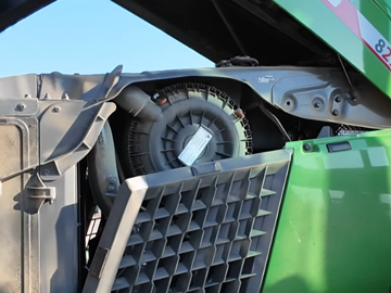 Les trois tracteurs de la série 800 Vario embarquent le même moteur, un bloc Agco Power de 8 L de cylindrée respectant la norme antipollution Stage V. Ce dernier a été développé spécifiquement pour ces modèles. Il repose sur un demi-châssis inspiré des 700 Vario Gen 7, lequel est pris sur la transmission. Le 829 de notre essai offre 290 ch de puissance maximale . Il a un petit frère et un grand frère qui développent respectivement 260 et 320 ch . La puissance est identifiable grâce au « 2 » et au « 9 » en rouge sur la calandre. Dotés de la technologie Fendt iD , ces moteurs sont lents et plus coupleux pour une consommation moindre, précise Fendt. La fonctionnalité DynamicPerformance offre 23 ch supplémentaires afin de compenser les pertes de puissance liées, par exemple, au ventilateur réversible ou à la climatisation. L’objectif est de gommer les déperditions de puissance afin de profiter le plus possible de la puissance maximale de 290 ch. Notons que réservoirs de carburant et d’AdBlue offrent des capacités respectives de 540 et 65 L. Du côté de l’entretien quotidien, la jauge à huile est accessible aisément sur la gauche grâce au garde-boue amovible. Radiateurs et filtre à air nécessitent l’ouverture de plaques latérales. Cependant, les premiers seront à souffler moins régulièrement, le tracteur embarquant un ventilateur réversible.