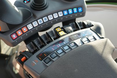 Depuis l’extérieur, l’utilisateur peut mettre en route la prise de force, lever et abaisser le relevage, ou encore commander un distributeur hydraulique. (© A.G.)