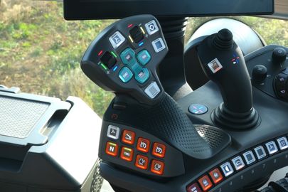 En cabine, les fonctions hydrauliques sont gérées via le joystick, un levier en croix ou encore les fingertips. (© A.G.)