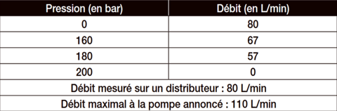Notre Case IH Vestrum 120 ActiveDrive 8 s’équipe d’une pompe hydraulique load sensing délivrant un débit annoncé à 110 L/min. Lors de notre relevé, le débit sur un distributeur a été mesuré à 80 L/min. La pression maximale du circuit relevée atteint 200 bar.
