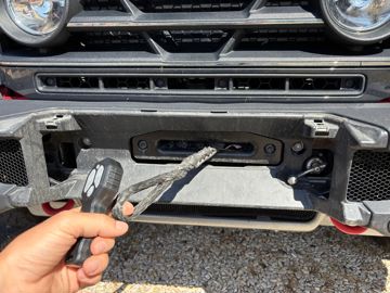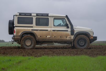 L’Ineos Grenadier reçoit un châssis échelle et des essieux rigides. Le blocage de différentiel central est disponible de série, contrairement aux optionnels blocages avant et arrière. Il est enclenché via le levier de boîte de transfert à deux vitesses « high » et « low », en le tirant et en le déplaçant sur la droite. Côté pneumatique, le 4x4 s'équipe de jantes en acier ou en alliage de 17 ou 18 pouces, avec des pneus Bridgestone Dueler A/T 001. Pour du tout-terrain plus engagé, les pneus BFGoodrich All-Terrain T/A sont disponibles en option. Ces derniers équipaient nos deux véhicules d’essai. Malgré la bande de roulement à crampons, le bruit sur route reste réduit, mais la consommation en est probablement impactée. Le Grenader dispose de nombreuses options, à l'image d'un treuil intégré à la face avant et commandé à distance.