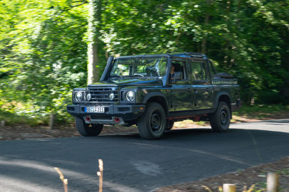 Sur route, dès les premiers tours de roues, je note son bon confort grâce, notamment, aux sièges Recaro offrant un bon maintien et aux suspensions gommant bien les imperfections de la route. Son gabarit nécessite cependant un temps d’adaptation, et je dois m’y reprendre à plusieurs reprises lors des premiers demi-tours ou virages serrés. En effet, avec un empattement de près de 3 m en version Wagon et de 3,2 pour le Quartermaster (pick-up), ainsi que les quatre roues motrices permanentes, l’Ineos n’est pas le roi de la maniabilité. Je note également rapidement l’effet de tangage, compréhensible étant donné le gabarit général et la garde au sol du véhicule. Cette dernière atteint les 264 mm, un vrai atout pour les terrains accidentés. Enfin, sur route, et particulièrement à haute vitesse, je ressens une légère latence en ligne droite.