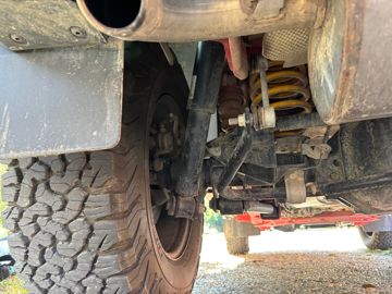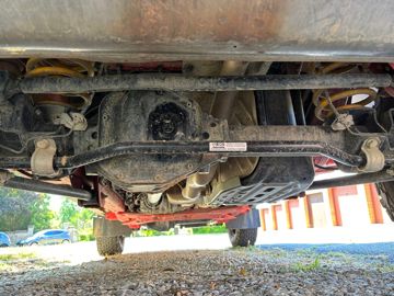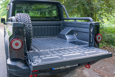 Point important, l’Ineos se dote de quatre roues motrices permanentes, et l’essieu arrière dispose de la même puissance de traction que le train avant, les deux étant reliés physiquement. En se penchant sous le Grenadier, on remarque instantanément que les choses n’ont pas été faites à moitié. Le châssis, comme les suspensions, les différentiels ou encore la barre de direction, est dimensionné pour pratiquer de l'off-road intense, et donc pour supporter de potentiels chocs. Contrairement aux « anciens » Defender ou à d’autres pick-up du marché, l’essieu arrière est suspendu non par des lames, mais par des amortisseurs, également très imposants – ce qui le rend confortable, quel que soit son chargement.
