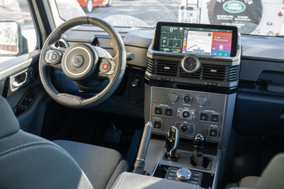 À bord, le savant mélange entre vintage et modernité est bien réussi. Toutefois, on remarque que le levier BMW, dédié à la gestion de la transmission, jure avec le reste, particulièrement avec le levier voisin de la boîte de transfert, au design plus ancien. À une époque où tous les boutons disparaissent au profit de la navigation dans l’écran, l’Ineos se veut simple, avec un bouton pour une fonction. J’apprécie ce parti pris, particulièrement pour la gestion de la climatisation et du chauffage.