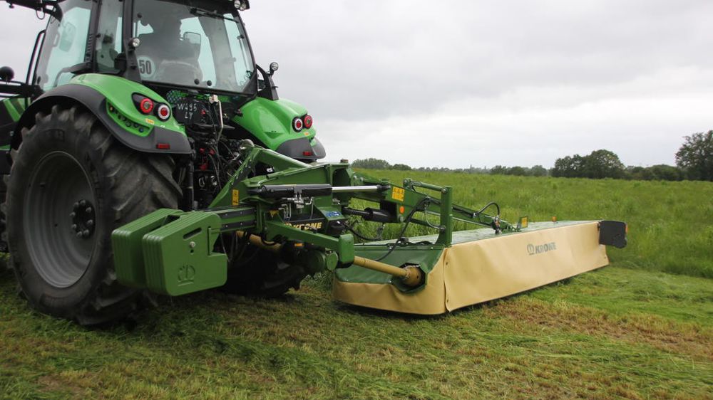 Fenaison Une faucheuse arrière Krone de 4,5 m de largeur